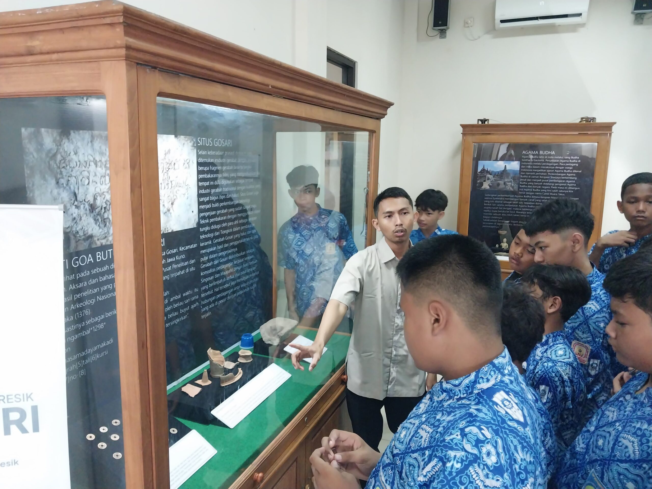 Tak hanya itu, siswa juga menyaksikan film dokumenter tentang penyebaran Islam di Gresik. Dari tayangan tersebut, mereka mengetahui bahwa sebelum Islam berkembang, wilayah Gresik telah dipengaruhi agama lain, dibuktikan dengan ditemukannya arca Buddha yang menunjukkan keberagaman kepercayaan pada masa lalu.