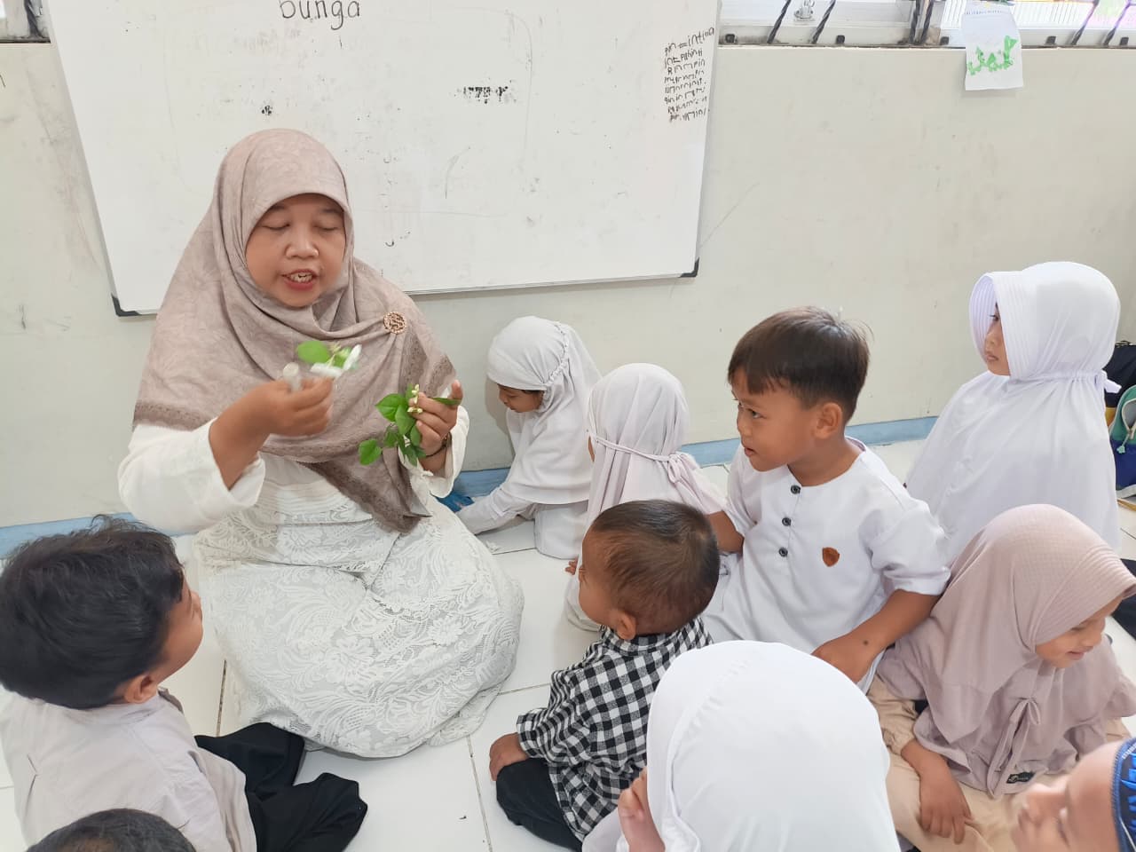 Bertempat di ruang kelas TK, satu per satu siswa mengamati bunda melati yang telah disiapkan oleh Bu Yudis, sapaan akrabnya. Pertanyaan pemantik dilontarkan kepada siswa untuk menstimulasi pengetahuan.