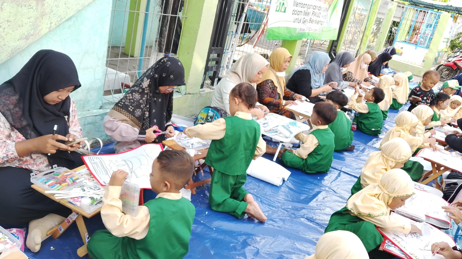 “Ayo nak, diwarnai yang bagus,” ucap Kusmiani, bunda dari Ananda Muhammad Syihabuddin Elbani, siswa A Fatimah, seraya menunjukkan gambar yang akan diwarnai.