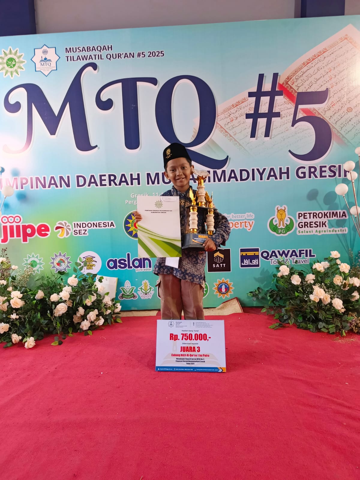 “Saya bersyukur diberi kesempatan untuk mengikuti MTQ ke-5 yang diadakan PDM Gresik yang diadakan di pergurun Muhammadiyah Cerme ini. Rasa takjub dengan prestasi ini karena merasa bekal untuk pelaksanaan lomba tidak terlalu lama karena kesibukan di sekolah yang cukup padat, Alhamdulillah bisa meraih juara 3. Semoga saya bisa lebih berprestasi dan selalu menjadi generasi Qurani,” ujarnya.
