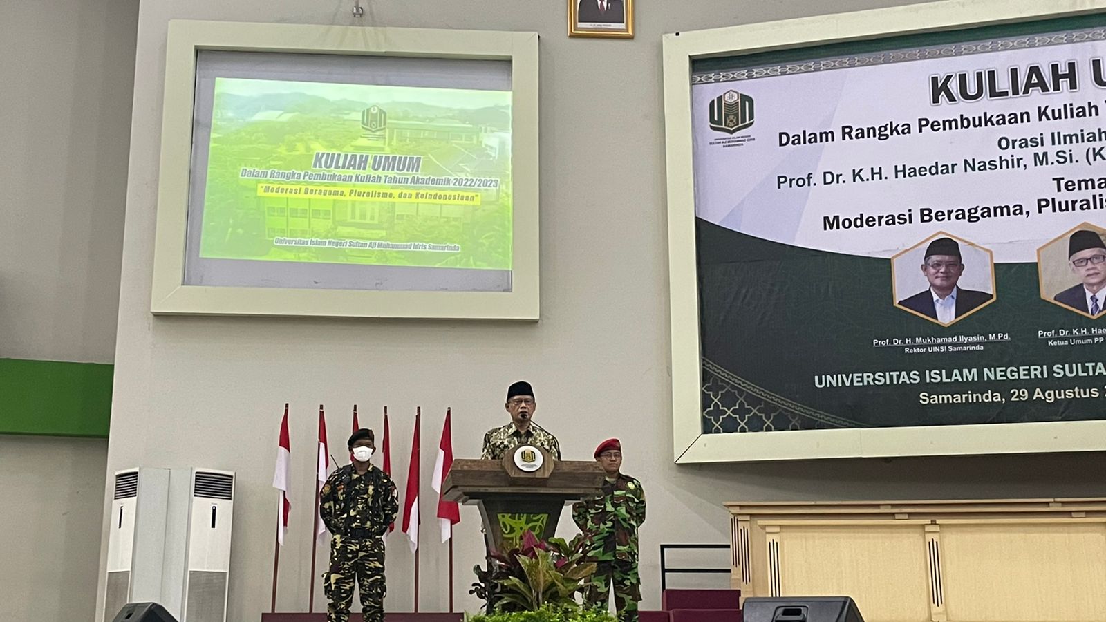 “Kata moderat bahasa indonesianya tengahan. Bahasa arabnya tawasuth atau wasthiyah. Intinya sama berada dalam titik median. Kalau yang belajar statistik tau artinya median tetapi posisi tengah dalam moderasi itu tidak seperti posisi median yang absolut di tengah. Dia bisa bergerak ke kanan dan ke kiri tetapi tetap dalam bingkat wasathiyah dalam bingkai tengahan dan oposisi ekstrim, dari oposisi ghuluw, dari oposisi biner yang bertentangan dengan itu,” terang Ketua Umum Pimpinan Pusat Muhammadiyah ini dalam Kuliah Umum di Universitas Islam Negeri Sultan Aji Muhammad Idris Samarinda, Senin (29/8).