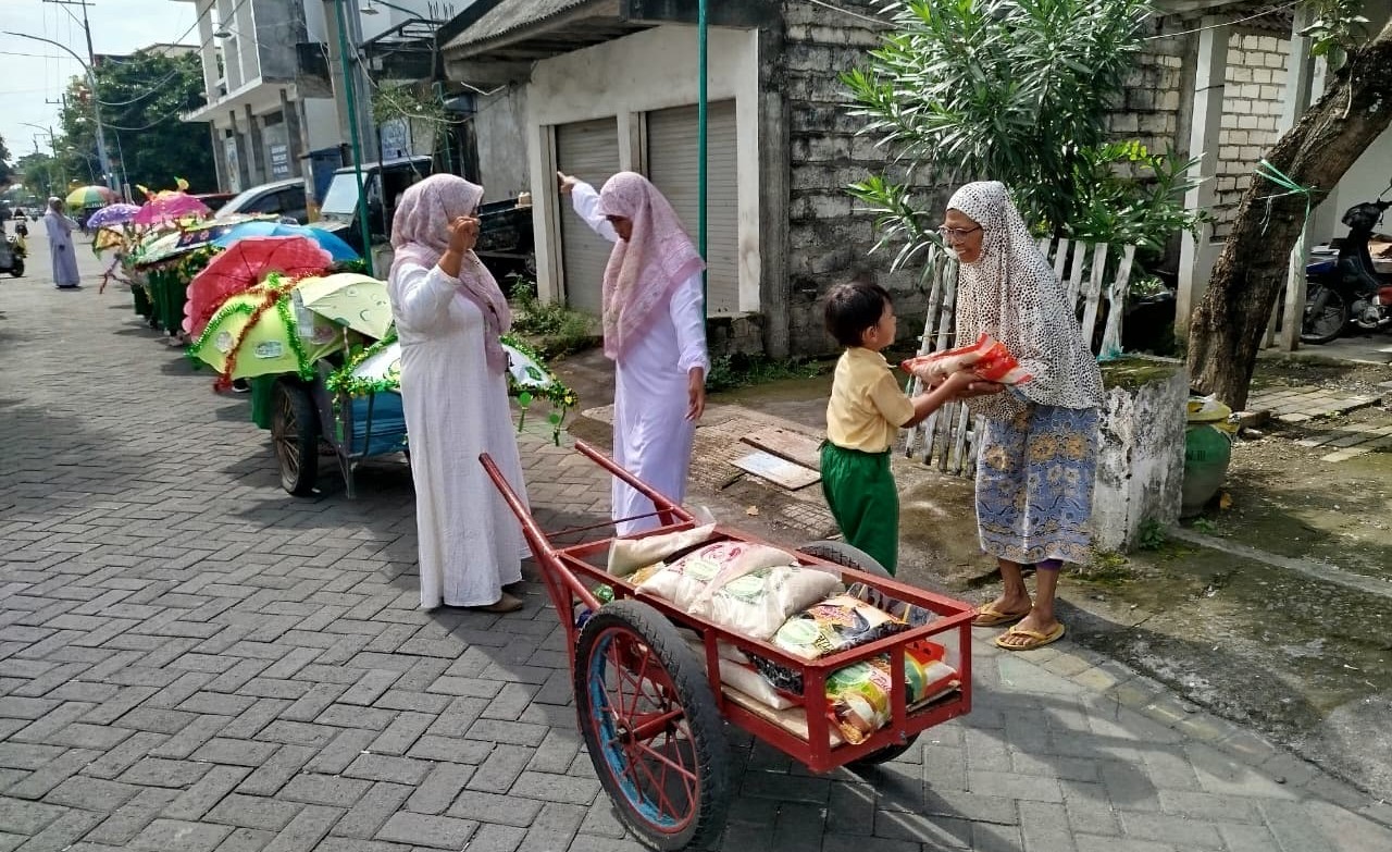 GIRIMU.COM — Sebanyak 123 siswa PAUD Aisyiyah Bungah, Gresik yang terdiri atas 32 siswa Kelompok Bermain (KB) dan 91 siswa TK Aisyiyah 5 menyearakkan bulan Ramadan dengan pawai payung hias saat membagikan zakat fitrah kepada warga sekitar.