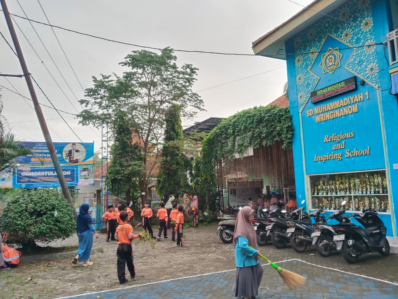 GIRIMU.COM — Peringatan Hari Bumi di SD Muhammadiyah 1 Wringinanom (SD Muwri) Gresik tahun ini berlangsung penuh semangat kebersamaan dan kepedulian terhadap lingkungan. Mengusung tema global Our Power, Our Planet, seluruh warga sekolah mulai dari guru, karyawan, siswa, hingga Ikatan Wali Murid (Ikwam) bersatu dalam kerja bakti membersihkan lingkungan sekolah dan sekitarnya, Rabu ( 22/4/2026).