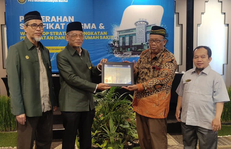 CIREBONMU, BANTUL — Rumah Sakit PKU Muhammadiyah Bantul (RS PKU Bantul) menerima sertifikat RS Syariah dengan predikat ISTIMEWA pada Senin (30/10/23) lalu. Sertifikat diserahkan oleh dr. Agus Sukaca, MPH Ketua tim sertifikasi SIRSMA MPKU PP Muhammadiyah dan diterima oleh H. Saebani, MPd yang merupakan Ketua BPH RS PKU Bantul disaksikan , dr. Ahmad Faesol , Sp.Rad, MMR Wakil Ketua PWM DIY, dan segenap Direksi dan Manajemen RS PKU Bantul. Predikat Istimewa ini merupakan standar tertinggi (bintang 5) yang diberikan SIRSMA (Standar Islami Rumah Sakit Muhammadiyah-Aisyiyah) MPKU PP Muhammadiyah. Standar Islami Rumah Sakit yang dikembangkan oleh Majelis Pembinaan Kesehatan Umum PP Muhammadiyah merupakan perwujudan dari integrasi layanan RS yang berkualitas, Syar’i dan Islami.