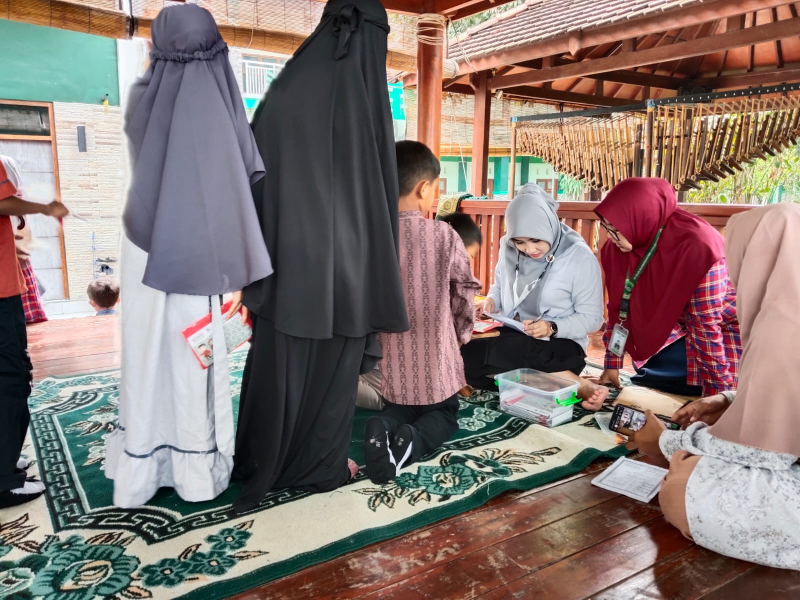 Lilik menjelaskan, kegiatan menabung biasanya dilakukan di halaman depan sekolah, namun karena hari ini hujan, kegiatan menabung dilakukan di gazebo jati.