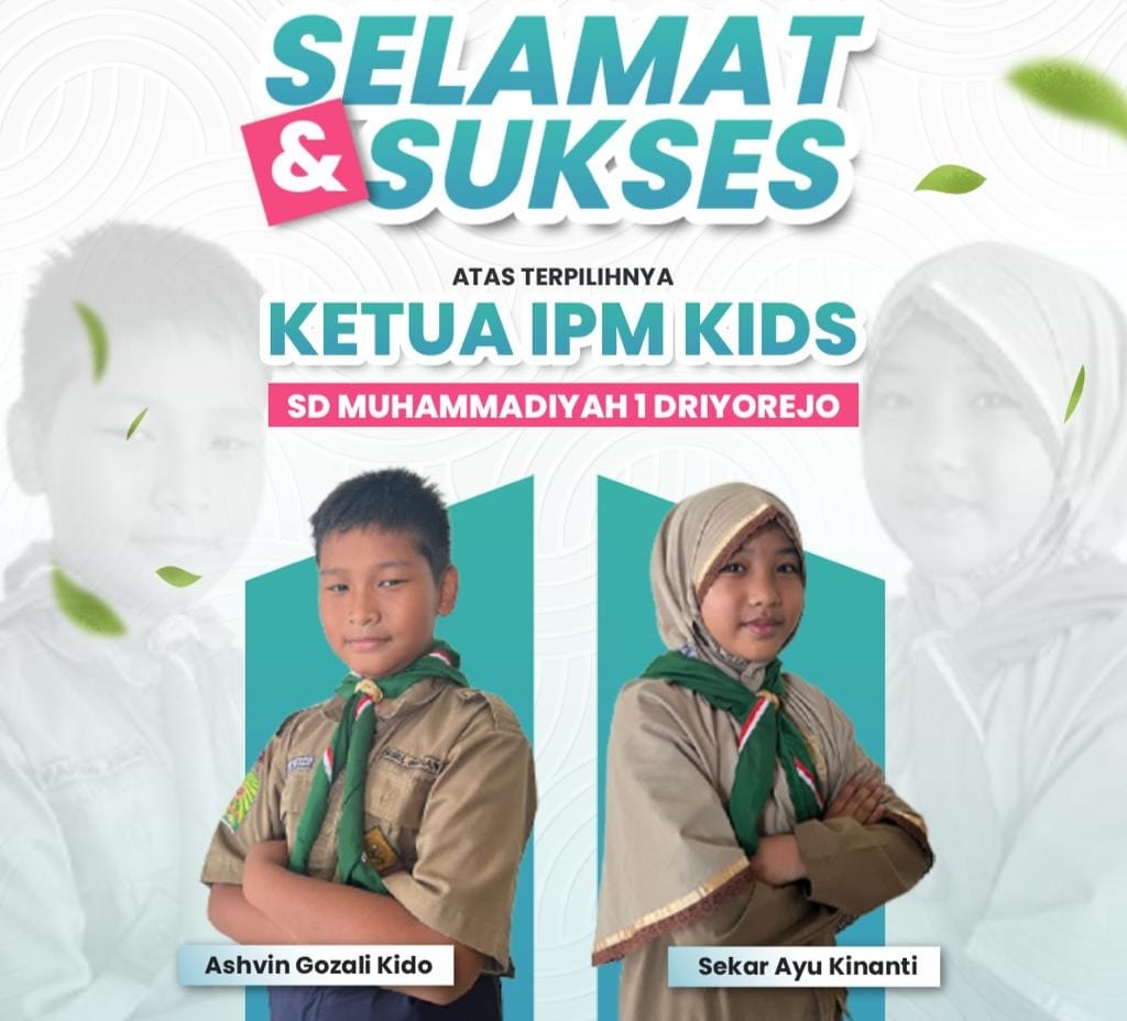 Menjadi ketua dan wakil ketua IPM Kids tak pernah terbayangkan oleh Ashvin Ghozali Kido dan Sekar Ayu Kinanti. Siswa kelas 5 Abu Bakar Ash Shiddiq ini melenggang sebagai paslon yang unggul dalam pemilu raya SD MUDRI periode 2025 – 2026.