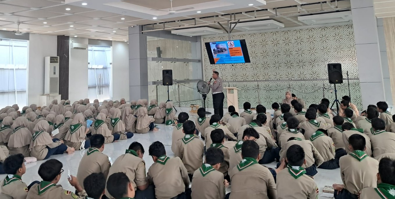 GIRIMU.COM — Kegiatan Guest Teacher di SMP Muhammadiyah 12 GKB (Spemdalas) Gresik menghadirkan tamu spesial IPDA Andreas Dwi Anggoro SH yang memaparkan materi tentang ”Sosialisasi Tata Tertib Berlalu Lintas saat Mengendarai Sepeda Motor”, Kamis (29/1/2026) di lantai 2 Masjid Taqwa Spemdalas.